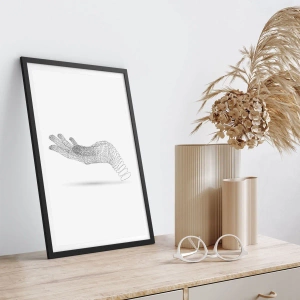 - Moderní plakát s abstraktní rukou složenou z čar na bílém pozadí. Tento minimalistický design se perfektně hodí do moderních a skandinávských interiérů.