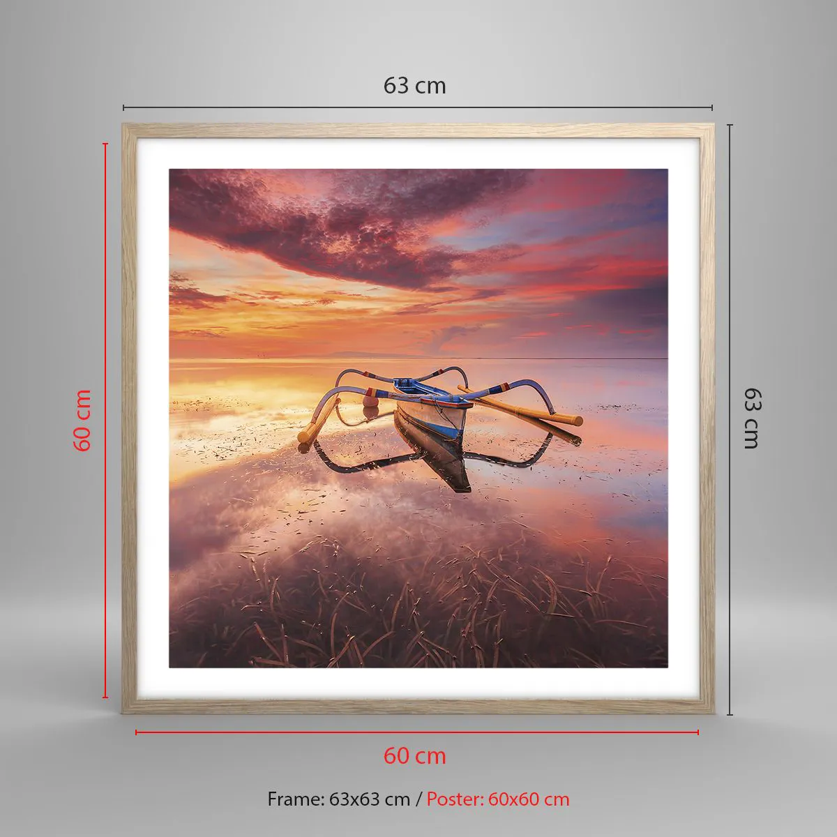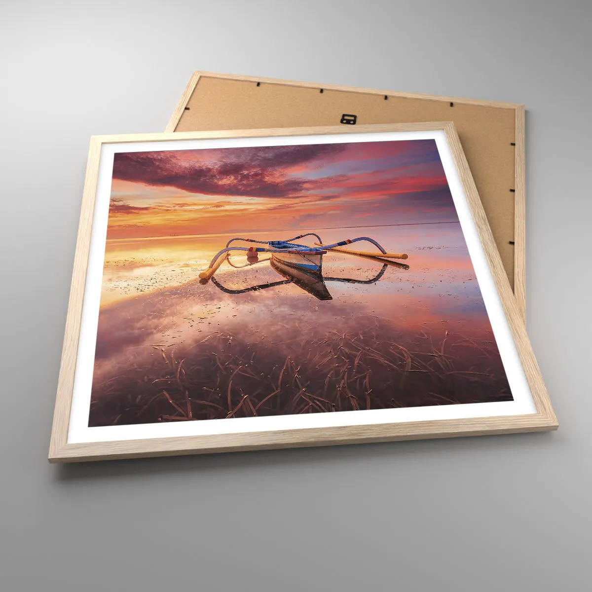 Plakát v rámu světlý dub - Klid tropického večera - 60x60 cm