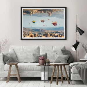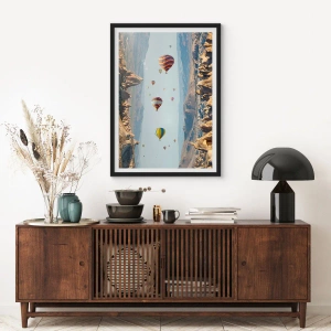 - Tento plakát zobrazuje horkovzdušné balóny vznášející se nad skalnatým terénem. Ideální do moderního interiéru. Součástí je černý rám. Rozměr: 50x70 cm.