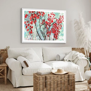 Plakát v bílém rámu - Strom v šarlatové - 70x50 cm