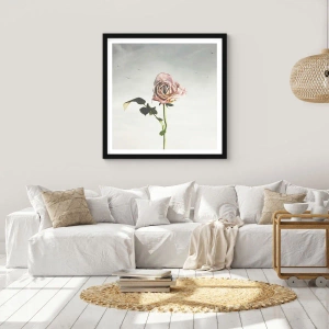 Plakát v černém rámu - Jemná růže proti křehké obloze - 50x70cm - Vítání jara - Moderní nástěnná dekorace do obývacího pokoje a ložnice ARTTOR