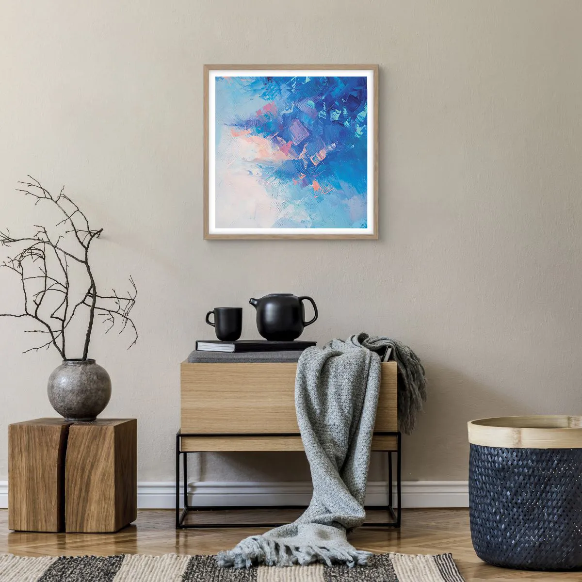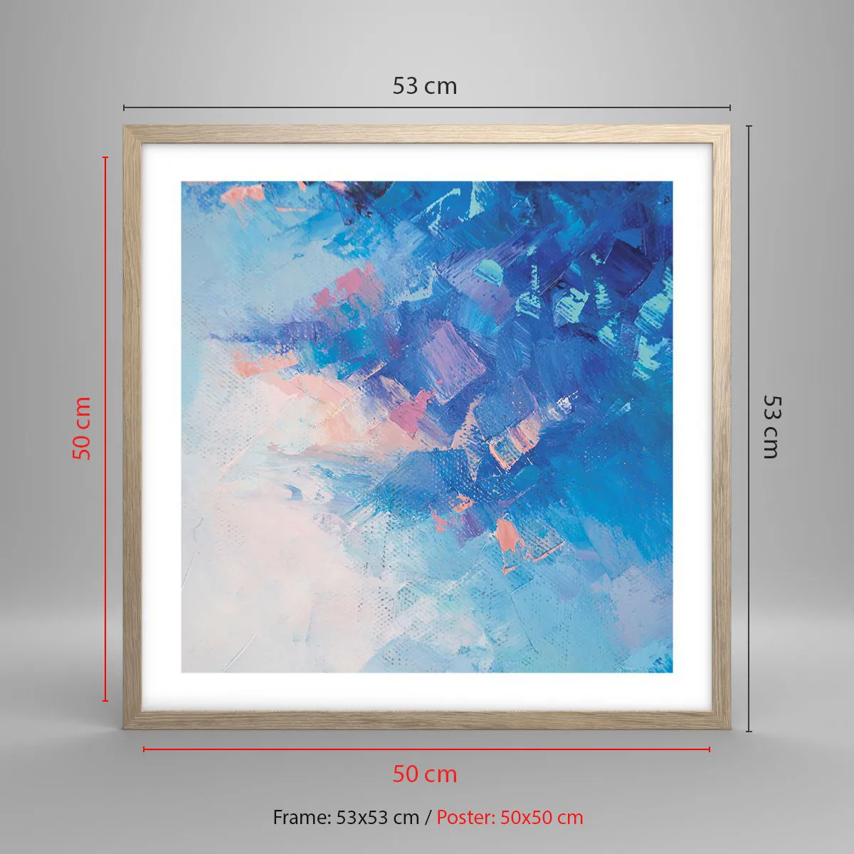 Plakát v rámu světlý dub - Zimní abstrakce - 50x50 cm