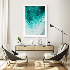Plakát v bílém rámu - Propadnout v bílé a tyrkysové - 50x70 cm