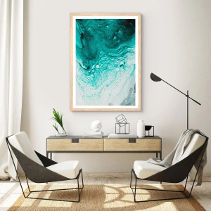 Plakát v rámu světlý dub - Propadnout v bílé a tyrkysové - 70x50 cm