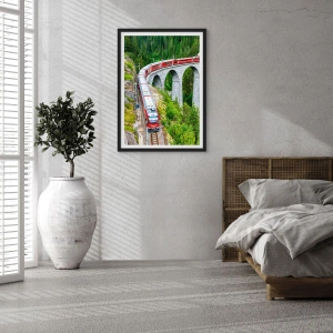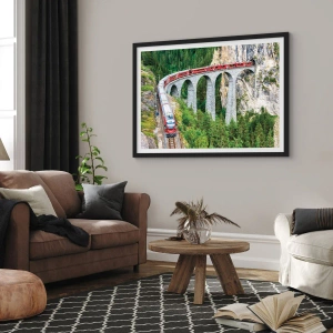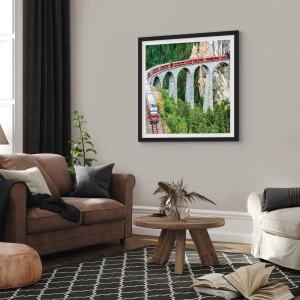 Plakát v černém rámu - Horský výhled přímo z vlaku - 30x30 cm