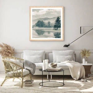 Plakát v rámu světlý dub - Jezero ještě spí - 40x40 cm