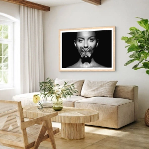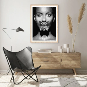 Plakát v rámu světlý dub - Motýlí polibek - 40x30 cm