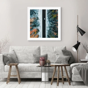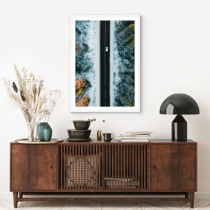 Plakát v bílém rámu - Přes zimní les - 50x70 cm