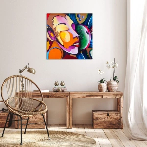 Motiv obličeje v barevné abstrakci symbolizuje emoce, kreativitu a krásu v rozmanitosti. Tento obraz inspiruje k zamyšlení nad bohatstvím lidského výrazu obličeje a zároveň zdůrazňuje harmonii mezi formou a barvou. Je to kompozice, která přitahuje pozornost a vyvolává pozitivní emoce.