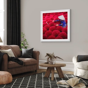 Plakát v bílém rámu - Na rýžovém poli - 70x50 cm