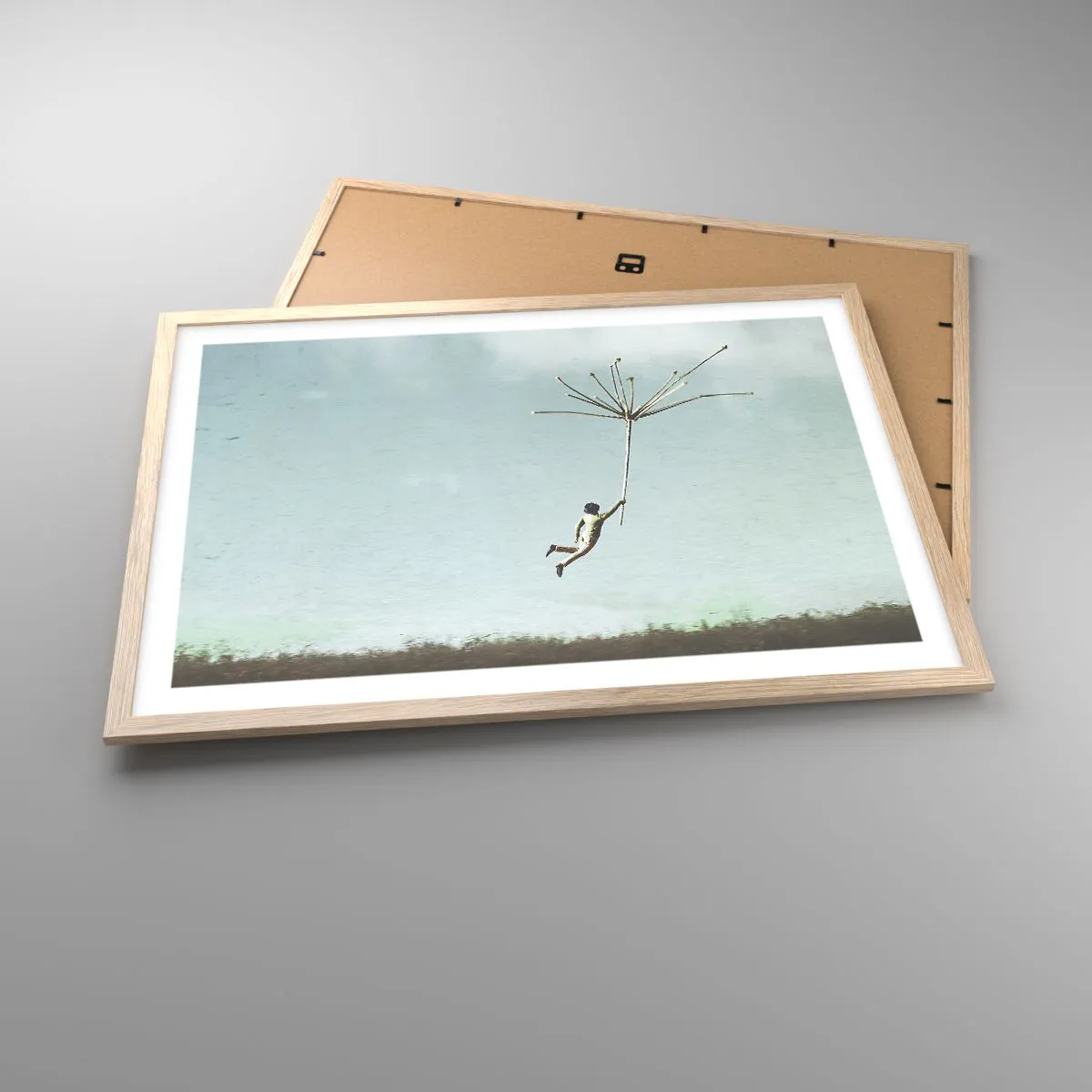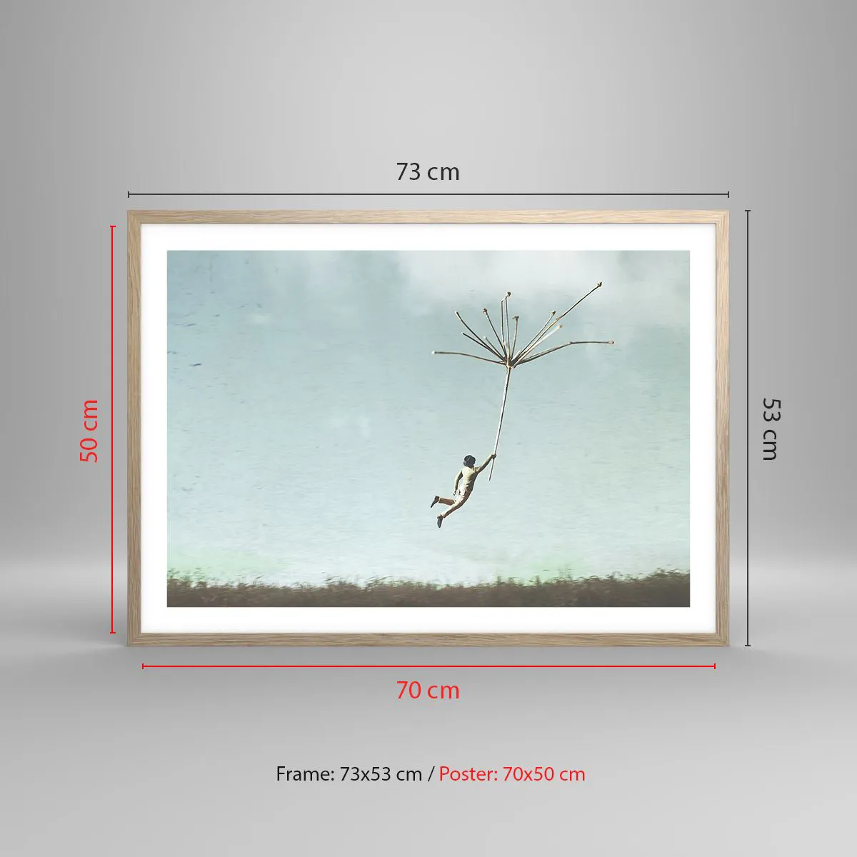 Plakát v rámu světlý dub - Letající pampeliška - 70x50 cm