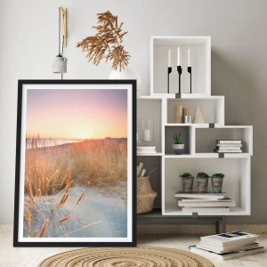 Plakát v černém rámu - Trávy na dunách osvětlené zapadajícím sluncem - 50x70cm - Baltská ukolébavka - Moderní nástěnná dekorace do obývacího pokoje a ložnice ARTTOR