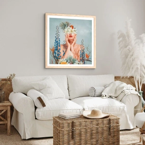 Plakát v rámu světlý dub - Žena – květina - 50x40 cm