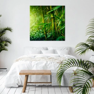 - Obraz „Zelená sama o sobě“ zobrazuje malebný bambusový les v jemném světle. Kompozice, která vnáší harmonii a klid do interiérů inspirovaných přírodou.