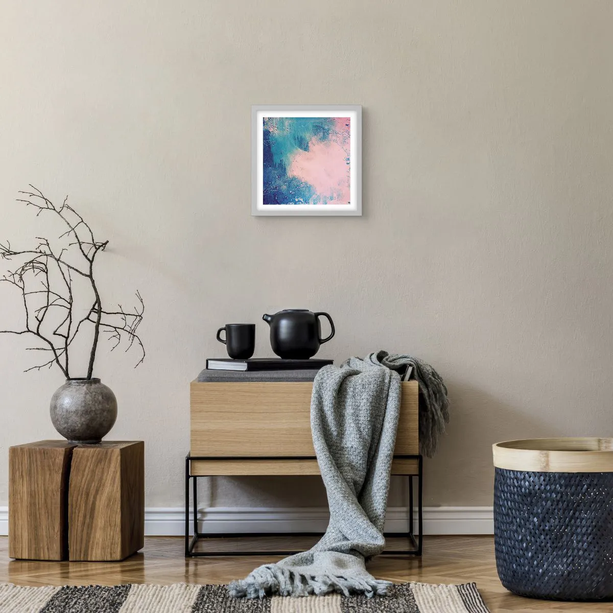 Plakát v bílém rámu - Modrá objetí - 30x30 cm