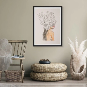 - Tento plakát zobrazuje portrét ženy v péřovém klobouku, vytvořený v uměleckém stylu. Jeho jemné barvy a rafinovaný motiv dodávají interiéru nádech jemnosti.