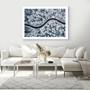 Plakát v bílém rámu - Zimním lesem - 61x91 cm
