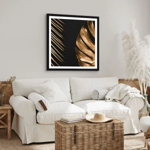 - Tento elegantní plakát s motivem zlatých listů na černém pozadí se skvěle hodí do stylových interiérů. Dokonale doplní moderní i minimalistický design. Sada obsahuje černý rám o rozměrech 50x70 cm.