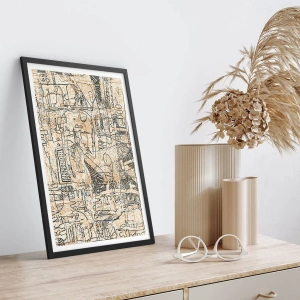 Plakát v černém rámu - Abstraktní geometrický vzor v odstínech béžové a černé - 50x70cm - Čeká na rozluštění - Moderní nástěnná dekorace do obývacího pokoje a ložnice ARTTOR
