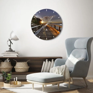 Nástěnné hodiny - Keep Walking Towards the Sun - Most přes vodu při západu slunce