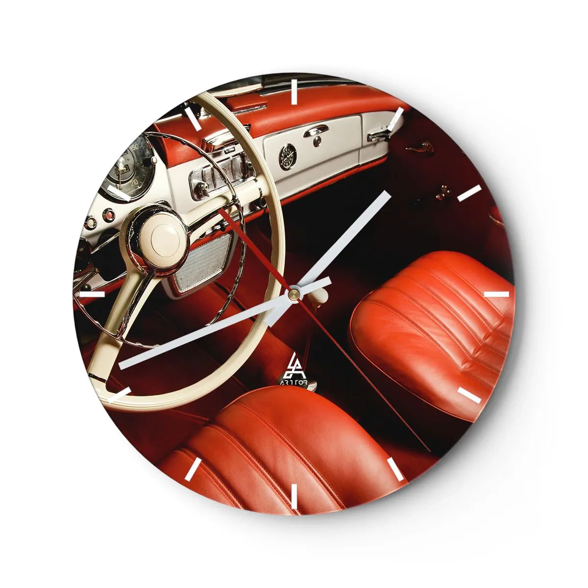 Nástěnné hodiny - Vintage Luxury - Interiér klasického vozu s červenými sedadly