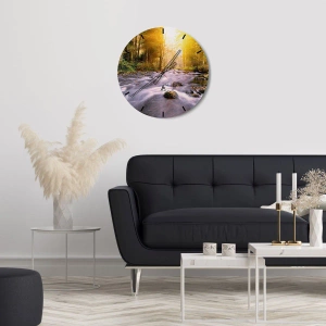 - Malebný potok protékající lesem, ozářený zlatým ranním světlem. Tyto nástěnné hodiny jsou ideální pro interiéry, které si cení klidu a harmonie.