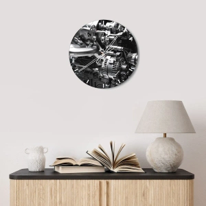 Hodiny jsou vyrobeny z bezpečného tvrzeného skla o tloušťce 4mm. Technologie výroby hodin je v souladu s třídou bezpečnosti 2B2 podle normy PN-EN 12600:2004, která garantuje odolnost proti nárazům. Hodiny na skle jsou připravené k zavěšení – mají kovový závěs upevněný na zadní částí hodin a pěnovou distanční podložku, která upravuje vzdálenost hodin od zdi. Hodiny mají tichý plovoucí mechanismus napájený 1,5V baterií - AA baterie (baterie není součástí balení).