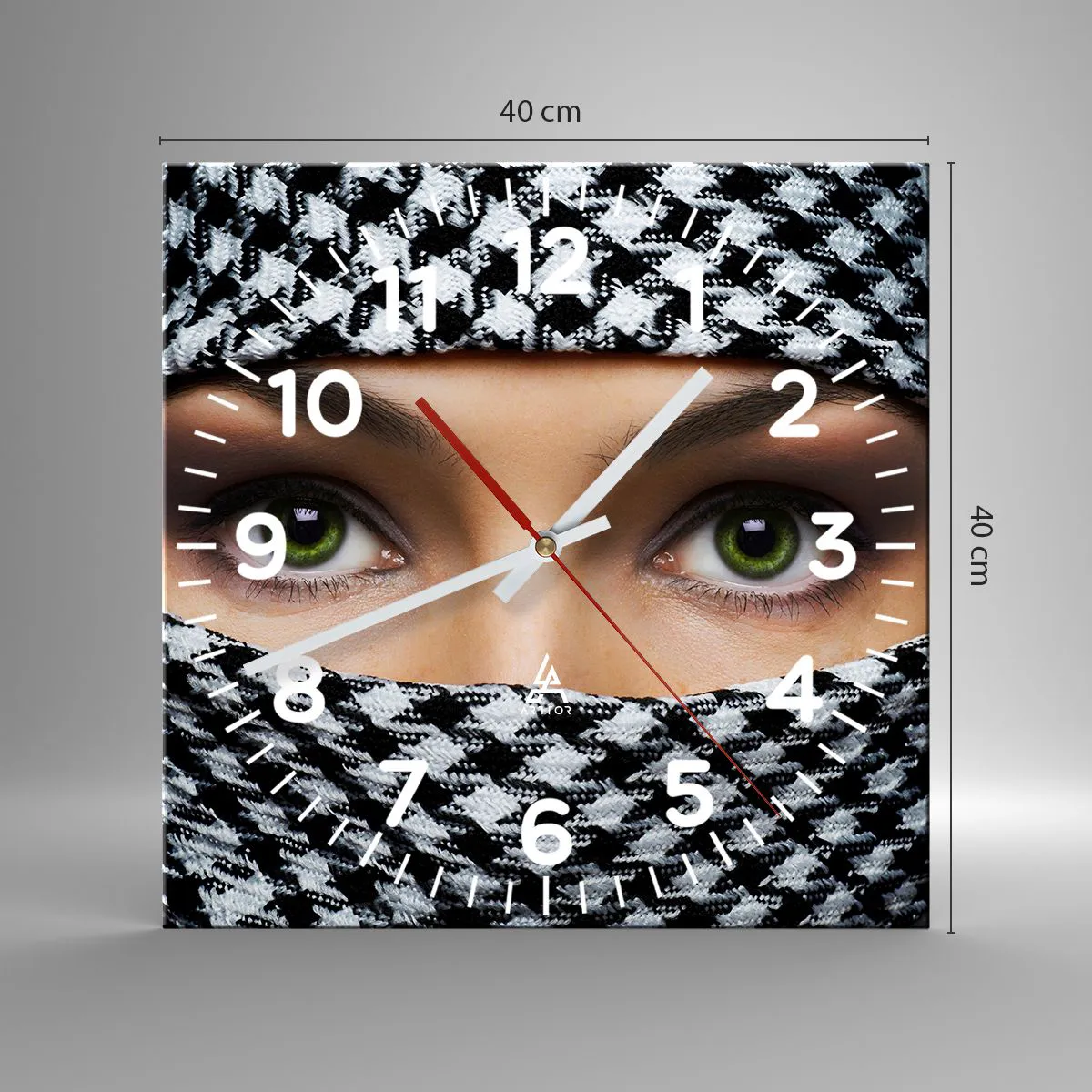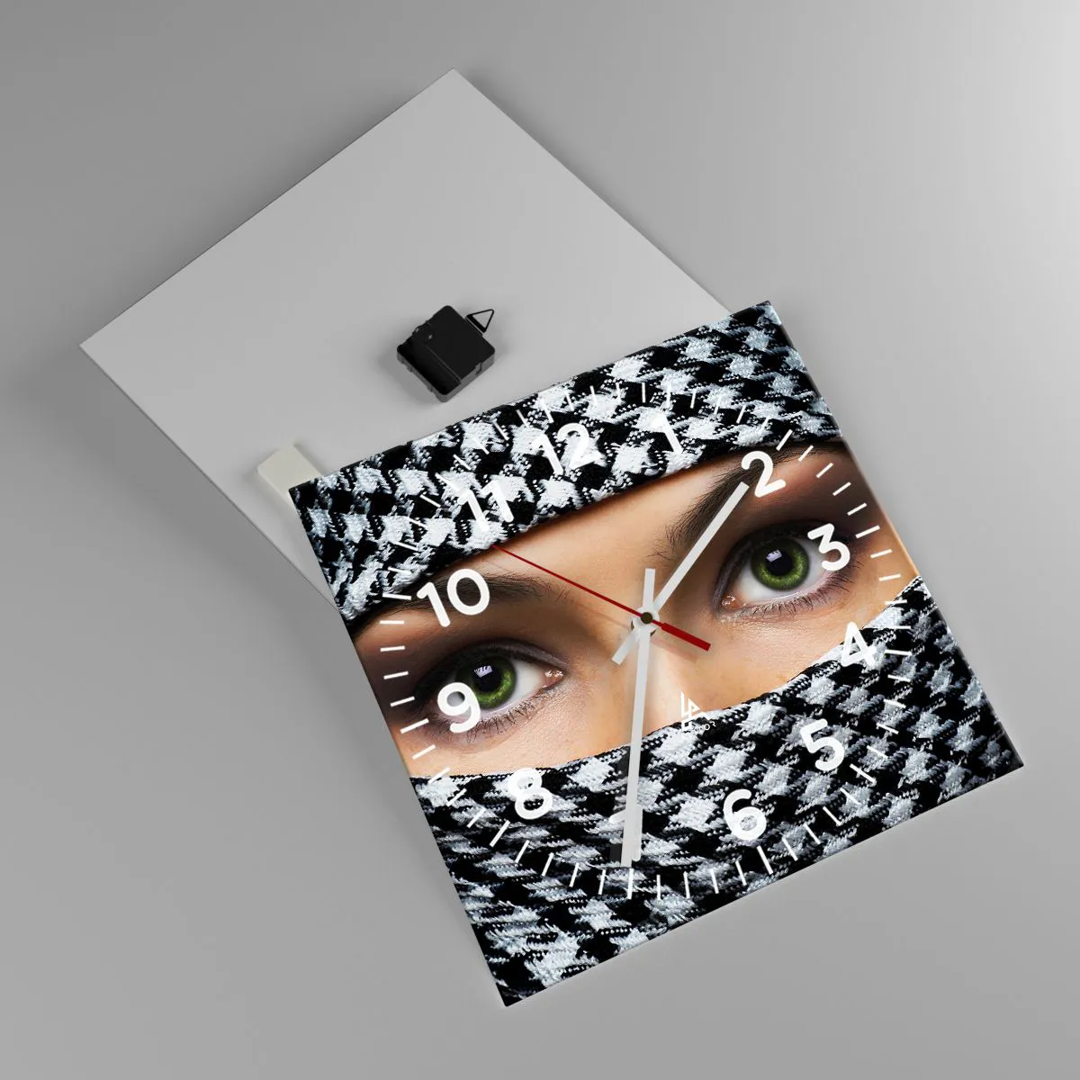 Nástěnné hodiny - Portrét zahalené zelenooké krásky - 40x40 cm