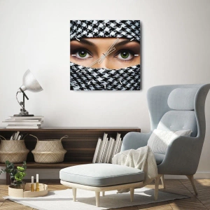 Nástěnné hodiny - Portrét zahalené zelenooké krásky - 30x30 cm