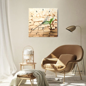 Nástěnné hodiny - Zelený výhonek rostoucí ze suché země - 30x30cm - Nespoutaná síla života - Moderní nástěnná dekorace do obývacího pokoje, kuchyně a ložnice ARTTOR