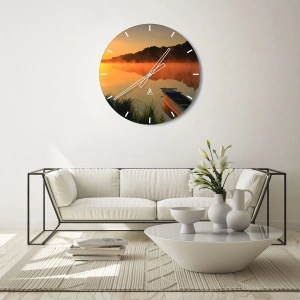 Nástěnné hodiny - Východ slunce u vody jako povrch zrcadla - 30x30 cm