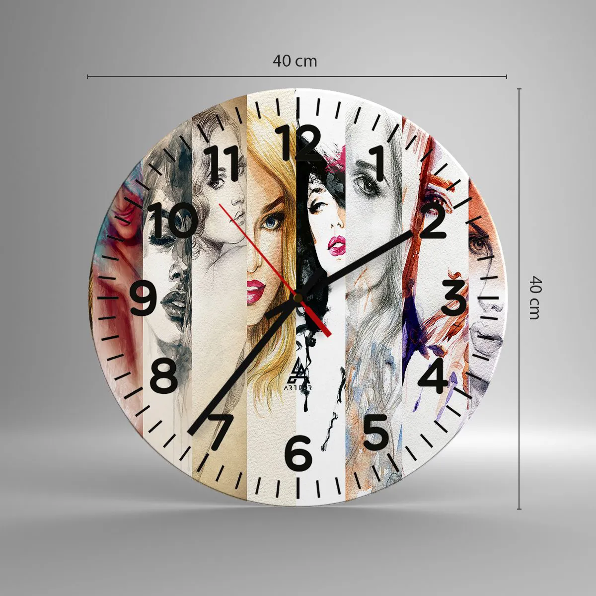 Hodiny jsou vyrobeny z odolného skla o tloušťce 4 mm. Sklo zachovává přirozené barvy potisku