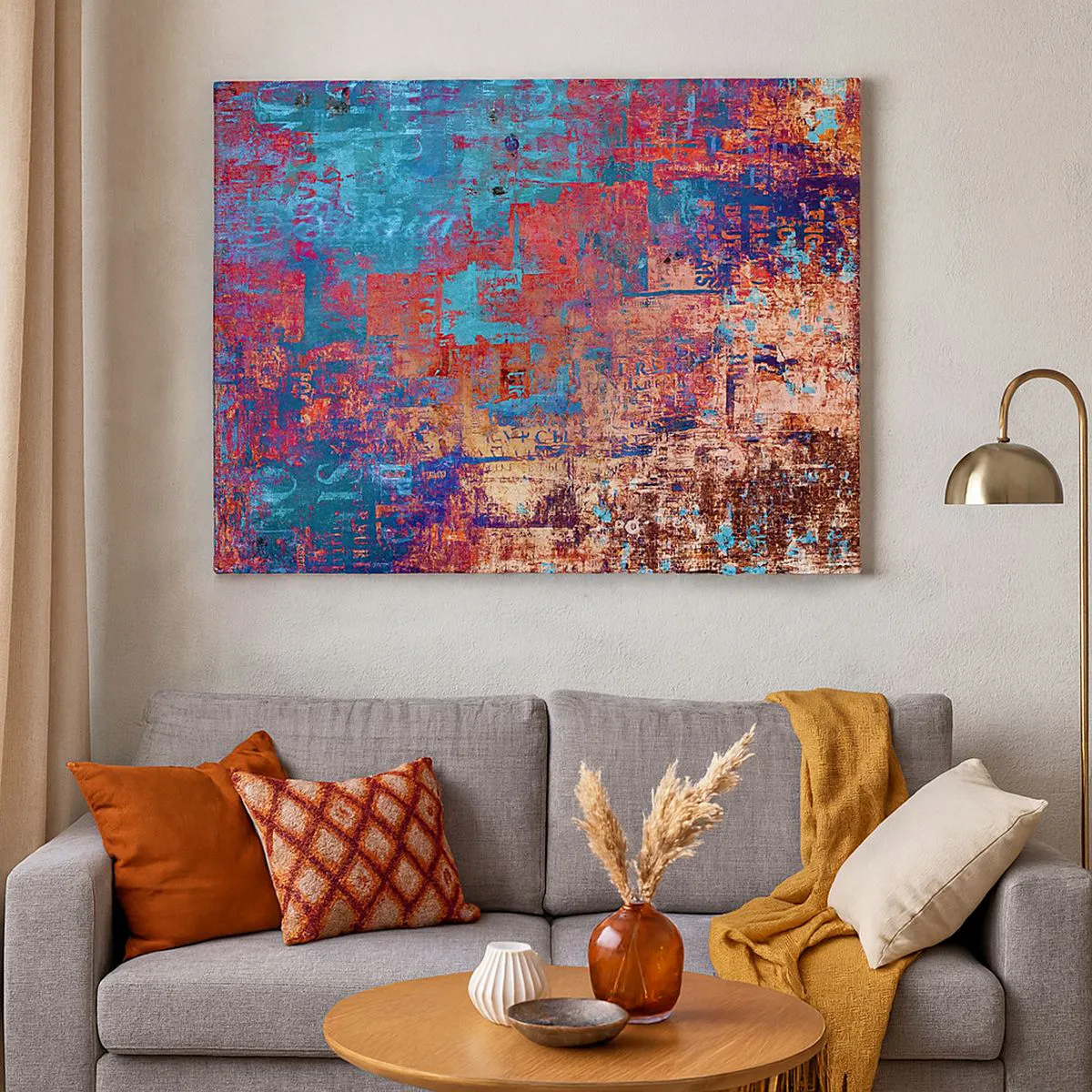 Vzpomínka a zapomnění je mimořádný plátěný tisk, který zobrazuje dynamickou abstraktní kompozici plnou intenzivních barev. Množství tyrkysových, růžových, oranžových a fialových odstínů přitahuje pozornost a dodává interiéru jedinečný charakter.