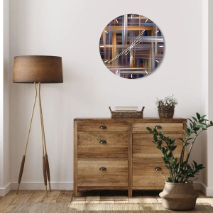 Nástěnné hodiny - Utkané ze světla - Mřížkový vzor v odstínech hnědé a modré