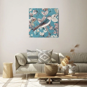 Nástěnné hodiny - Na bílém stromě ptáci a stříbrné listí - 40x40 cm