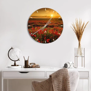 Nástěnné hodiny - Uprostřed vln šustících luk, mezi záplavami květin - Pole červených vlčích máků při západu slunce