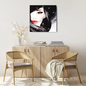 Ciferník zobrazuje portrét ženy s intenzivním safírovým pohledem, zvýrazněný jemnými odstíny červené a černé. Precizní zpracování a harmonie barev dodávají hodinám jedinečný charakter, díky čemuž jsou perfektním doplňkem moderního i klasického interiéru.