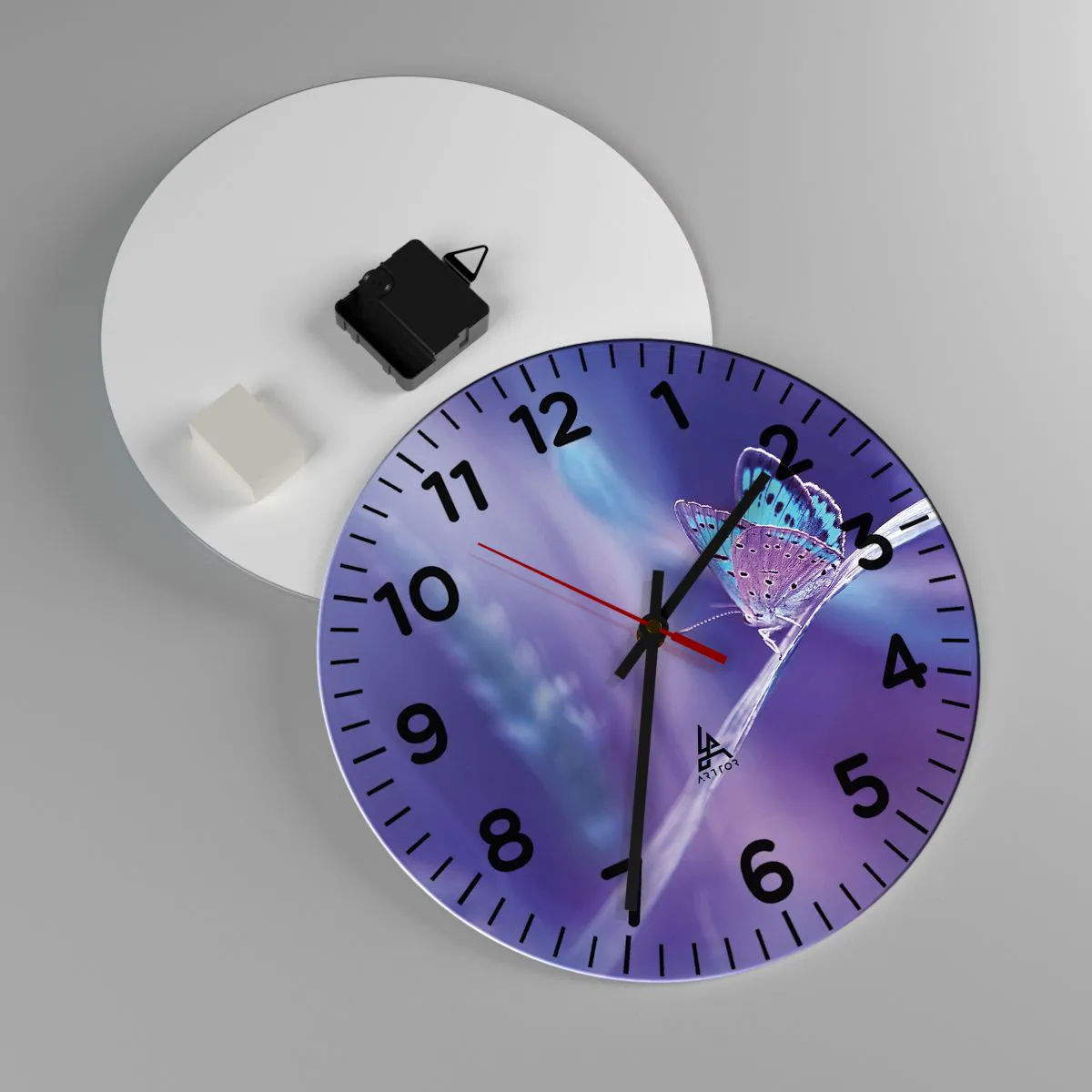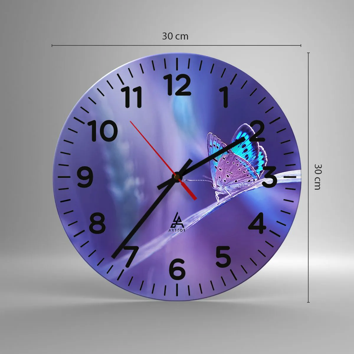 Hodiny jsou vyrobeny z odolného skla o tloušťce 4 mm. Sklo zachovává přirozené barvy potisku