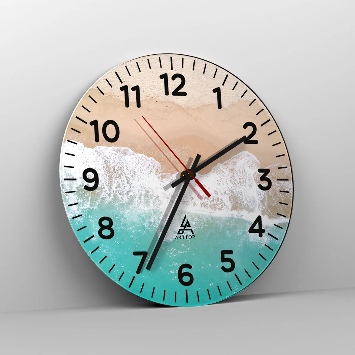 Hodiny jsou vyrobeny z odolného skla o tloušťce 4 mm. Sklo zachovává přirozené barvy potisku
