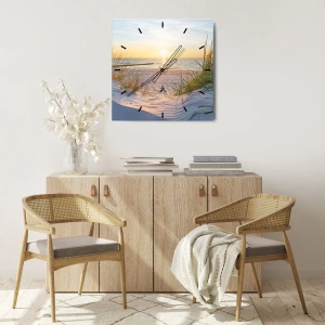 Nástěnné hodiny - Šumění moře, zpěv ptáků, divoká pláž uprostřed trávy… - 30x30 cm