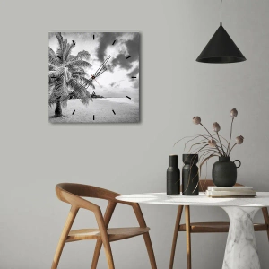 Hodiny jsou vyrobeny z bezpečného tvrzeného skla o tloušťce 4mm. Technologie výroby hodin je v souladu s třídou bezpečnosti 2B2 podle normy PN-EN 12600:2004, která garantuje odolnost proti nárazům. Hodiny na skle jsou připravené k zavěšení – mají kovový závěs upevněný na zadní částí hodin a pěnovou distanční podložku, která upravuje vzdálenost hodin od zdi. Hodiny mají tichý plovoucí mechanismus napájený 1,5V baterií - AA baterie (baterie není součástí balení).