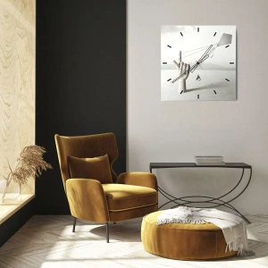 Hodiny jsou vyrobeny z bezpečného tvrzeného skla o tloušťce 4mm. Technologie výroby hodin je v souladu s třídou bezpečnosti 2B2 podle normy PN-EN 12600:2004, která garantuje odolnost proti nárazům. Hodiny na skle jsou připravené k zavěšení – mají kovový závěs upevněný na zadní částí hodin a pěnovou distanční podložku, která upravuje vzdálenost hodin od zdi. Hodiny mají tichý plovoucí mechanismus napájený 1,5V baterií - AA baterie (baterie není součástí balení).