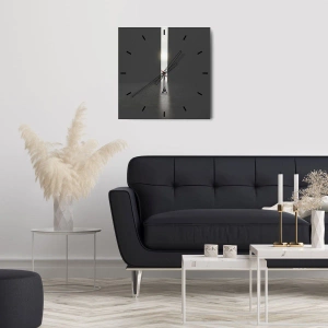Hodiny jsou vyrobeny z bezpečného tvrzeného skla o tloušťce 4mm. Technologie výroby hodin je v souladu s třídou bezpečnosti 2B2 podle normy PN-EN 12600:2004, která garantuje odolnost proti nárazům. Hodiny na skle jsou připravené k zavěšení – mají kovový závěs upevněný na zadní částí hodin a pěnovou distanční podložku, která upravuje vzdálenost hodin od zdi. Hodiny mají tichý plovoucí mechanismus napájený 1,5V baterií - AA baterie (baterie není součástí balení).