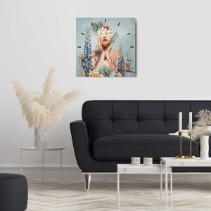 Nástěnné hodiny - Žena – květina - 30x30 cm