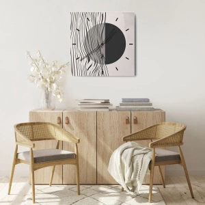 Hodiny jsou vyrobeny z bezpečného tvrzeného skla o tloušťce 4mm. Technologie výroby hodin je v souladu s třídou bezpečnosti 2B2 podle normy PN-EN 12600:2004, která garantuje odolnost proti nárazům. Hodiny na skle jsou připravené k zavěšení – mají kovový závěs upevněný na zadní částí hodin a pěnovou distanční podložku, která upravuje vzdálenost hodin od zdi. Hodiny mají tichý plovoucí mechanismus napájený 1,5V baterií - AA baterie (baterie není součástí balení).