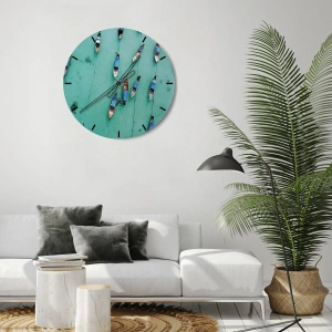 "Lodě na tyrkysové vodě" jsou originální nástěnné hodiny, které zobrazují pohled z ptačí perspektivy na lodě plující na klidné tyrkysové vodě. Záběr vyjadřuje pocit lehkosti a harmonie a do interiéru vnáší motiv inspirovaný přírodou.