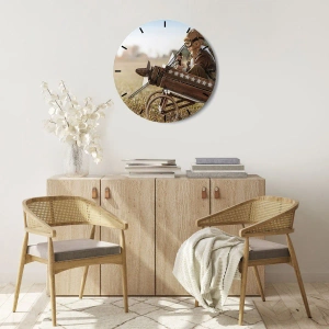 "Vzlétnout do snů" jsou mimořádné nástěnné hodiny, které nás přenesou do světa dětských snů a dobrodružství. Hlavním motivem je chlapec v pilotním kostýmu, sedící v dřevěném letadle a držící v rukou kormidlo. Retro styl oblečení, letecké brýle a teplé barvy dodávají scéně nostalgický, pohádkový charakter, připomínající dobu dětských her a fantazií o cestování nebem.