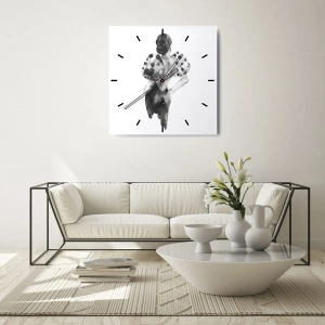 Nástěnné hodiny - Černobílá ilustrace ženy v elegantních šatech - 30x30cm - Prošla kolem - Moderní nástěnná dekorace do obývacího pokoje, kuchyně a ložnice ARTTOR