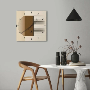 Hodiny jsou vyrobeny z bezpečného tvrzeného skla o tloušťce 4mm. Technologie výroby hodin je v souladu s třídou bezpečnosti 2B2 podle normy PN-EN 12600:2004, která garantuje odolnost proti nárazům. Hodiny na skle jsou připravené k zavěšení – mají kovový závěs upevněný na zadní částí hodin a pěnovou distanční podložku, která upravuje vzdálenost hodin od zdi. Hodiny mají tichý plovoucí mechanismus napájený 1,5V baterií - AA baterie (baterie není součástí balení).