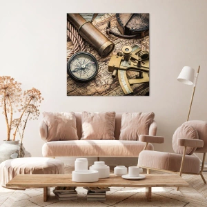 Tento obraz se dokonale hodí do interiérů inspirovaných námořnictvem, historií nebo cestováním. Jeho jedinečný charakter z něj činí ideální doplněk do kanceláře, obývacího pokoje nebo knihovny, který do interiéru vnáší harmonii a expresivitu. Motiv mapy a námořních přístrojů symbolizuje objevování, zvědavost o světě a hledání smyslu.